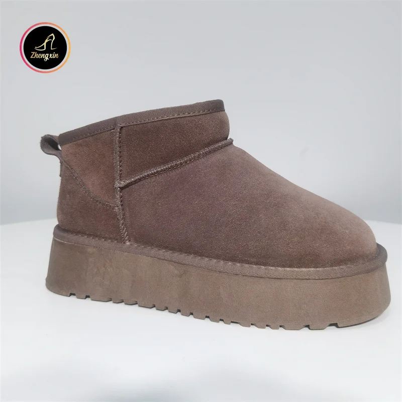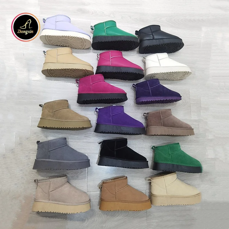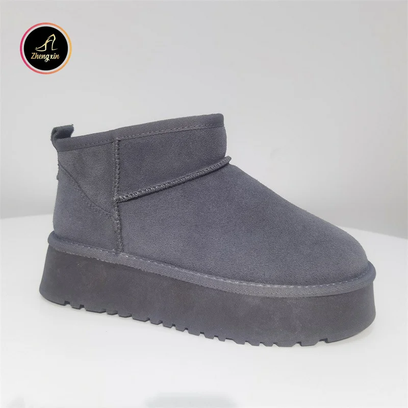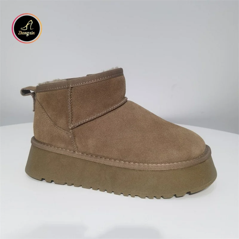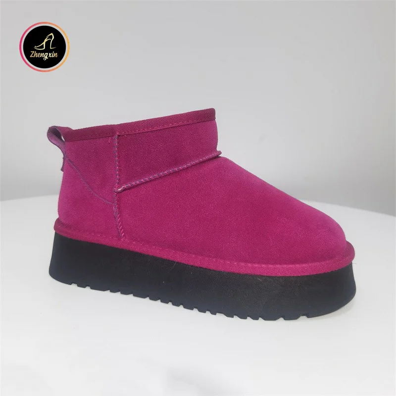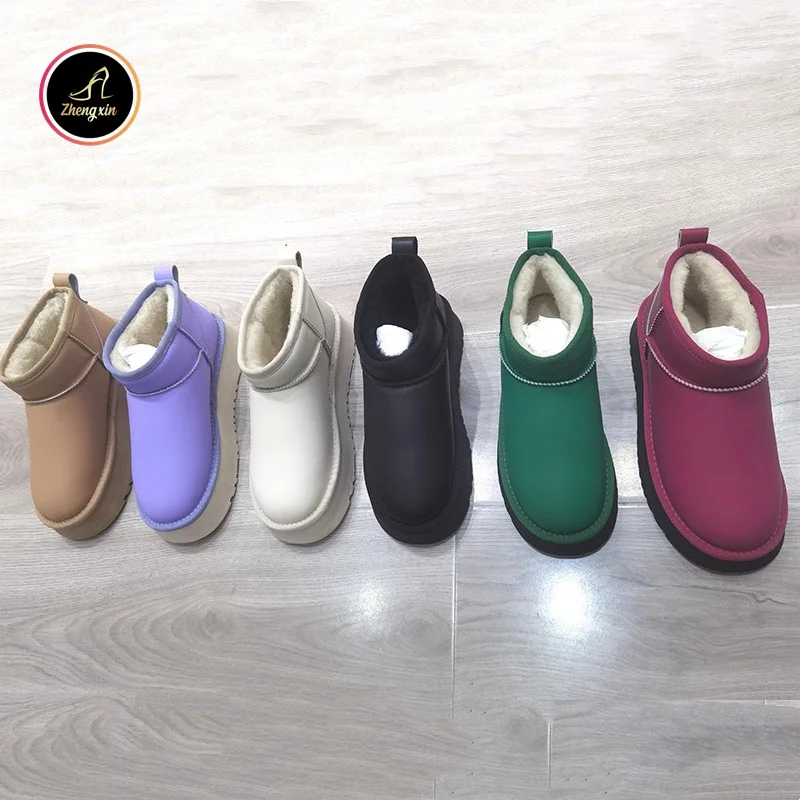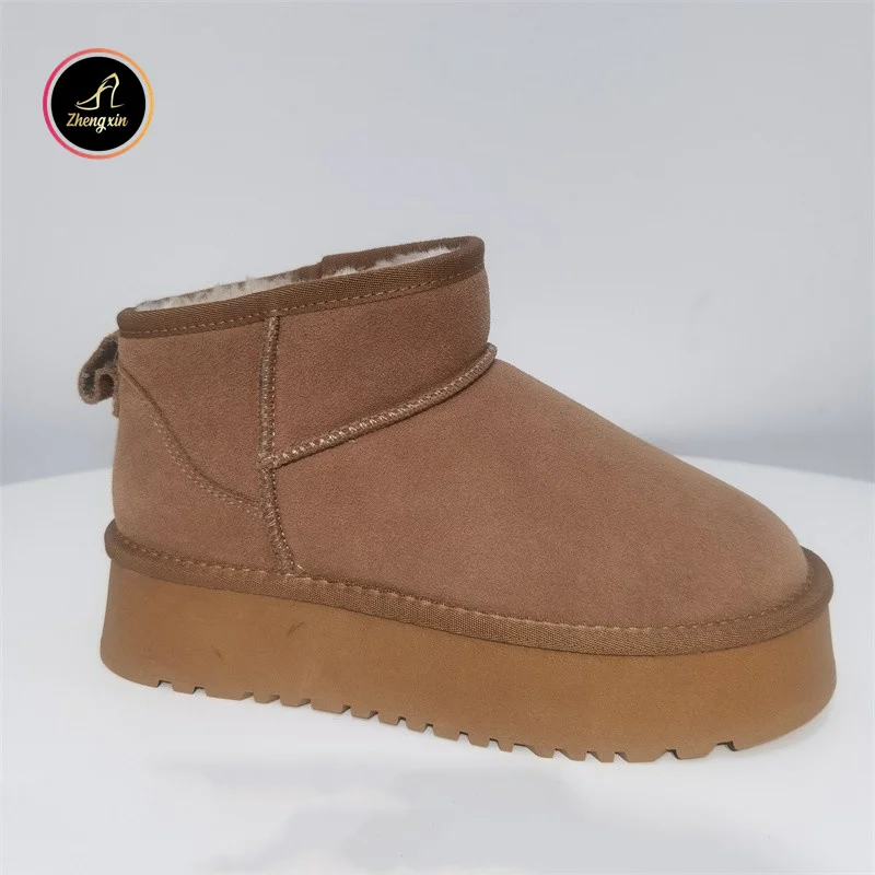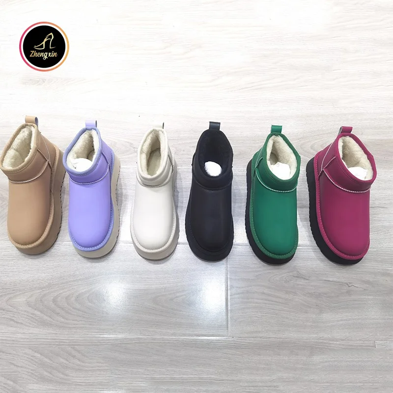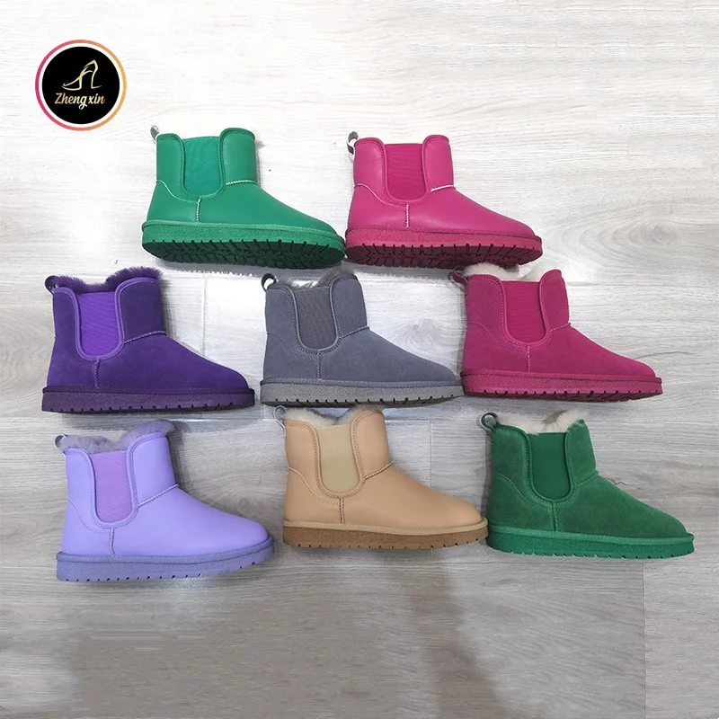 Custom Logo Custom High Quality Genuine Cowhide Leather Upper Anti-slip Warm Plush Fur Women Snow Boots Women Winter Boots shoes