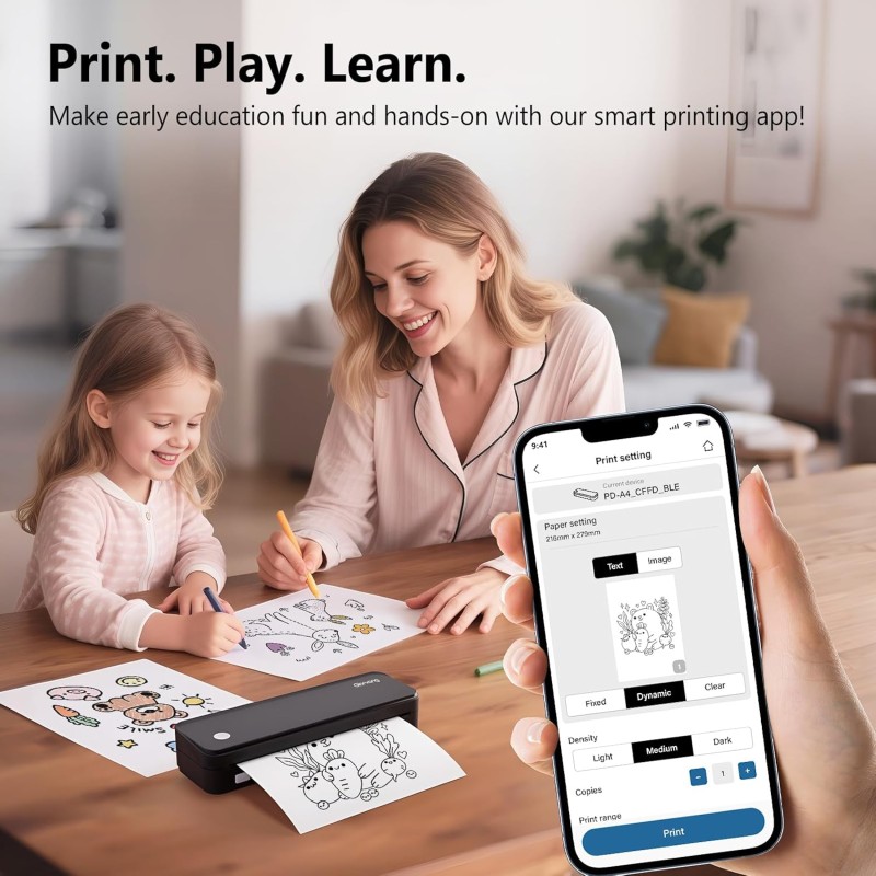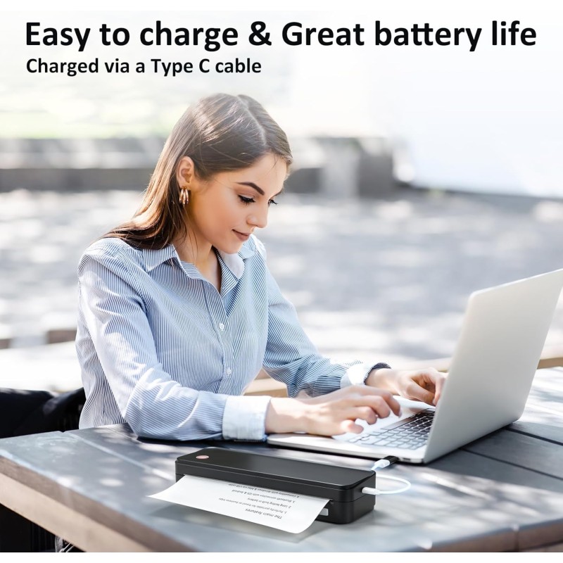 - High-Quality Printing & Long-lasting Battery - This resolution of this printer is 203DPI. Equipped with 2 built-in 2600mAh batteries, it offers up to 3 hours of continuous printing and 360 sheets on a single charge. (Only Print in Black, not print in color!!)
