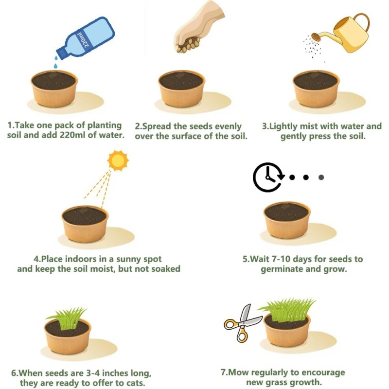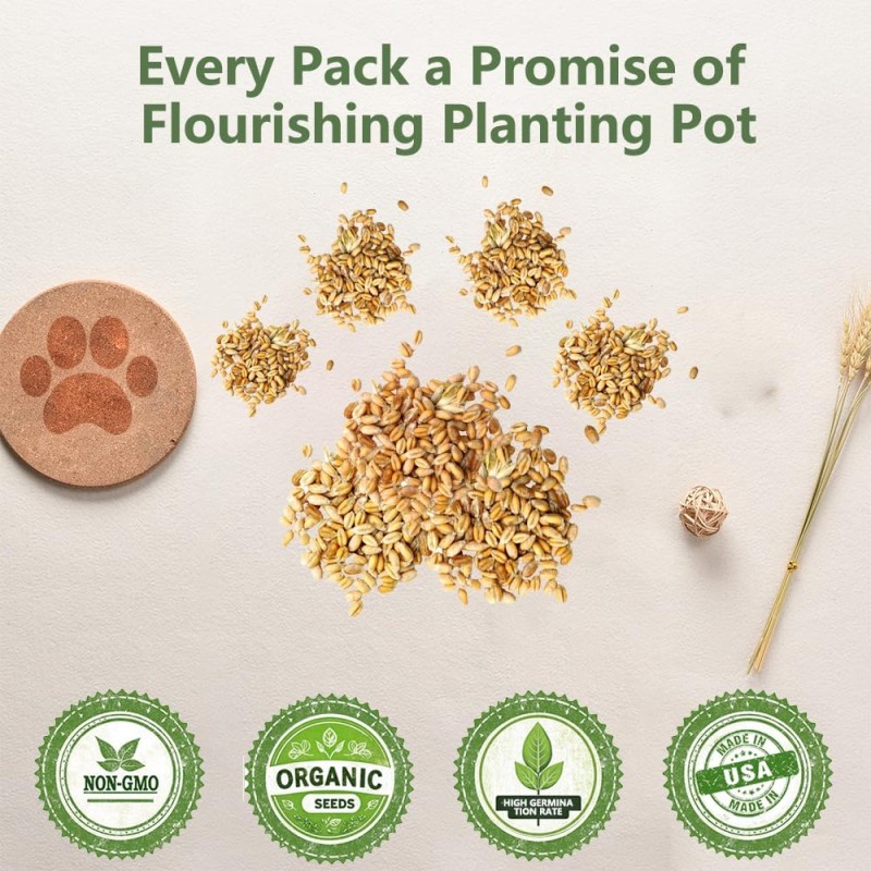 Cat Grass for Indoor Cats - Cat Grass Seeds Kit - Organic Cat Grass Growing Kit with High Germination Organic Wheat Seeds, Soil, and Planting Tools - Natural Hairball Control and Digestion Remedy
