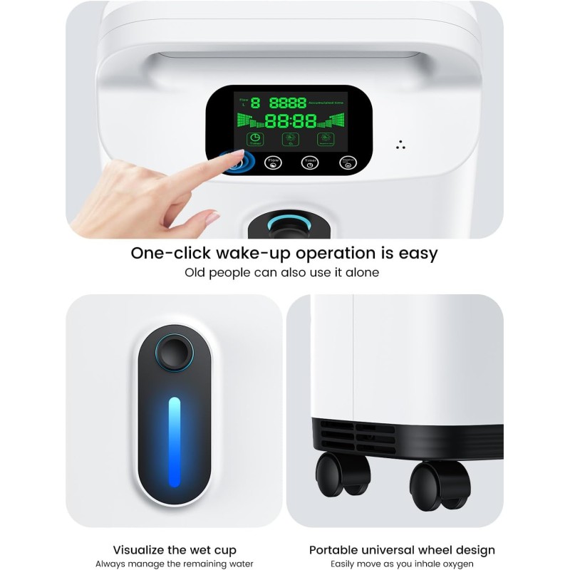 - Portable Design: Measuring 16x14x11 inches and weighing just 17 pounds, this oxygen concentrator features a built-in carrying handle. Combined with the included 360° wheel kit, it rolls effortlessly to any room in your home.