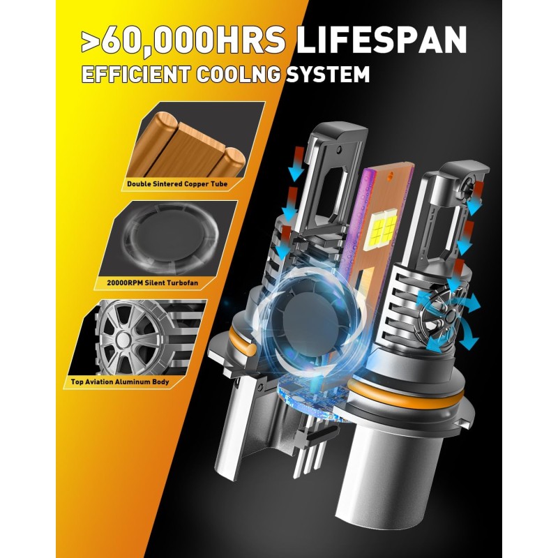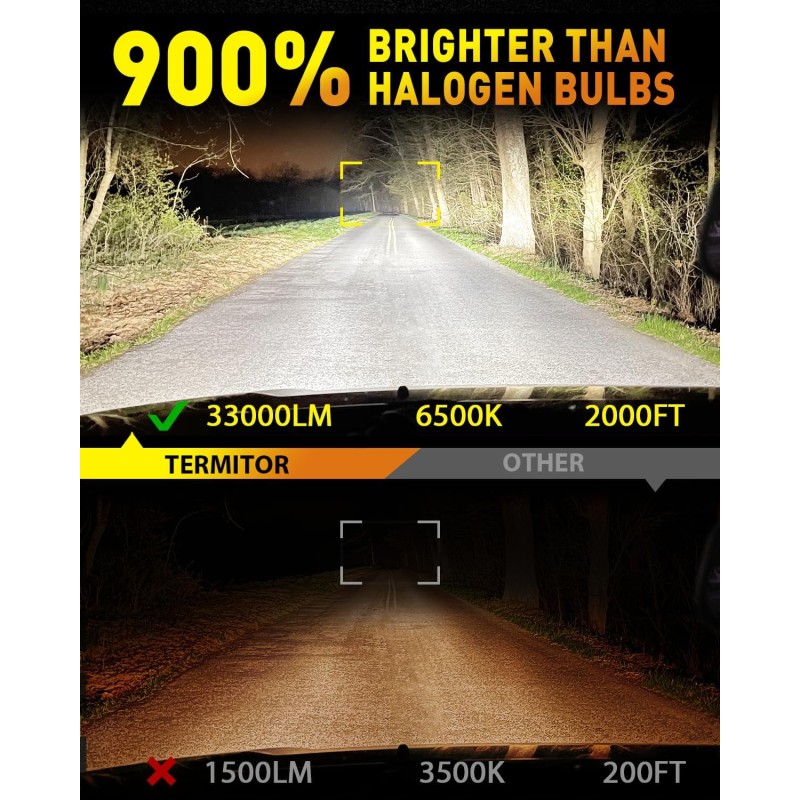 - 【900% Breakthrough Brightness】Upgrade your driving experience with our brand-new upgraded high-power bulbs. Each set of bulbs is equipped with 48 high-power chips and has a brightness of up to 33,000 Lumens. Adopting the latest Z10 technology, these headlight bulbs provide reliable and efficient lighting for safe night driving.