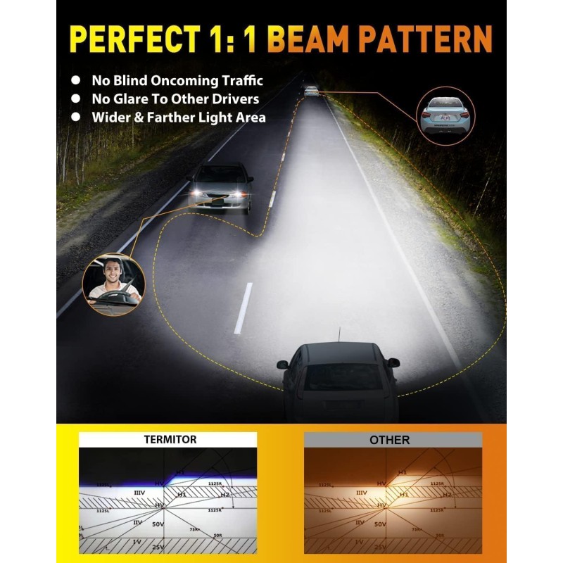 - 【Most Perfect Beam Pattern】The lights precisely mimic the factory halogen bulbs, and after thousands of tweaks and calibrations, achieved the best light pattern and provide clearest visibility. There are no dark spots or shadow areas, and no blinding or glare to oncoming drivers while driving, which greatly enhances safety.