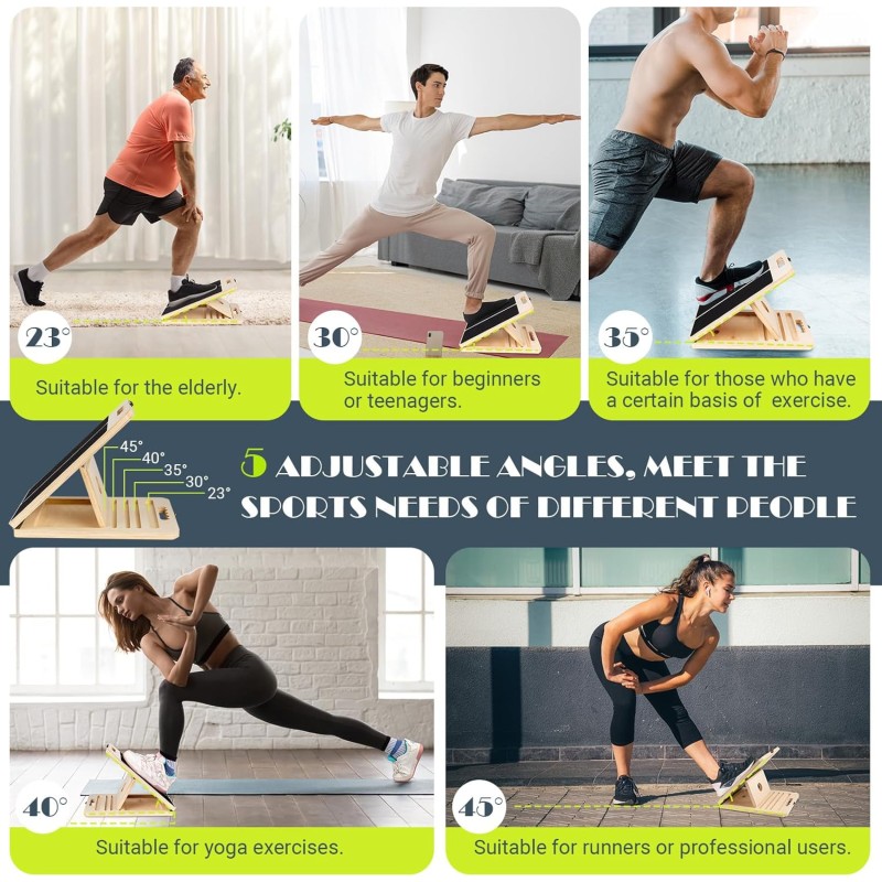 • [5 Adjustable Angle Slant Board] The slant board for calf stretching is suitable for beginners and experienced exercisers and all body types to add variety and challenge to a workout programme.
